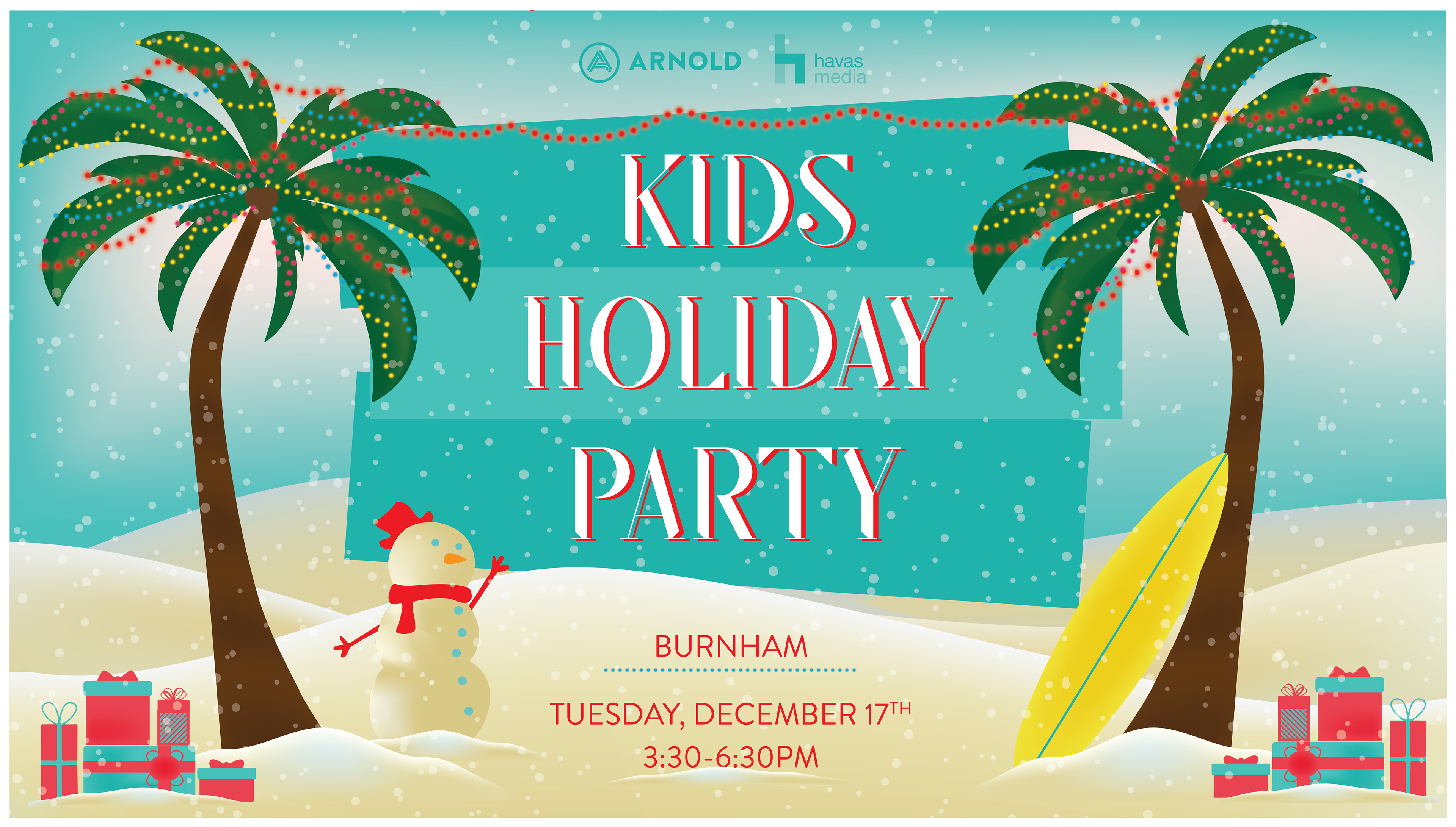 Designed the internal company announcement at Arnold Worldwide for our beach themed winter holiday party - created in illustrator.